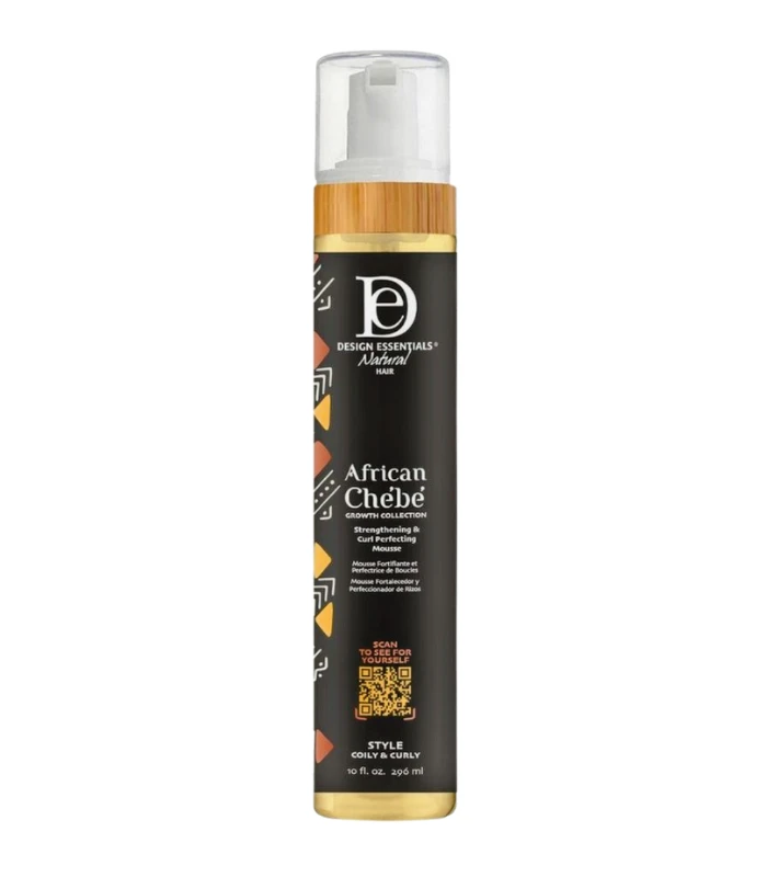 Boost curl definition with Design Essentials African Chebe Growth Collection Strengthening and Curl Enhancing Mousse, offering lightweight volume and control. The airy texture enhances shape and moisture through Styling / Lightweight Moisturizing / Curl Defining performance. Curls appear fuller and more defined.